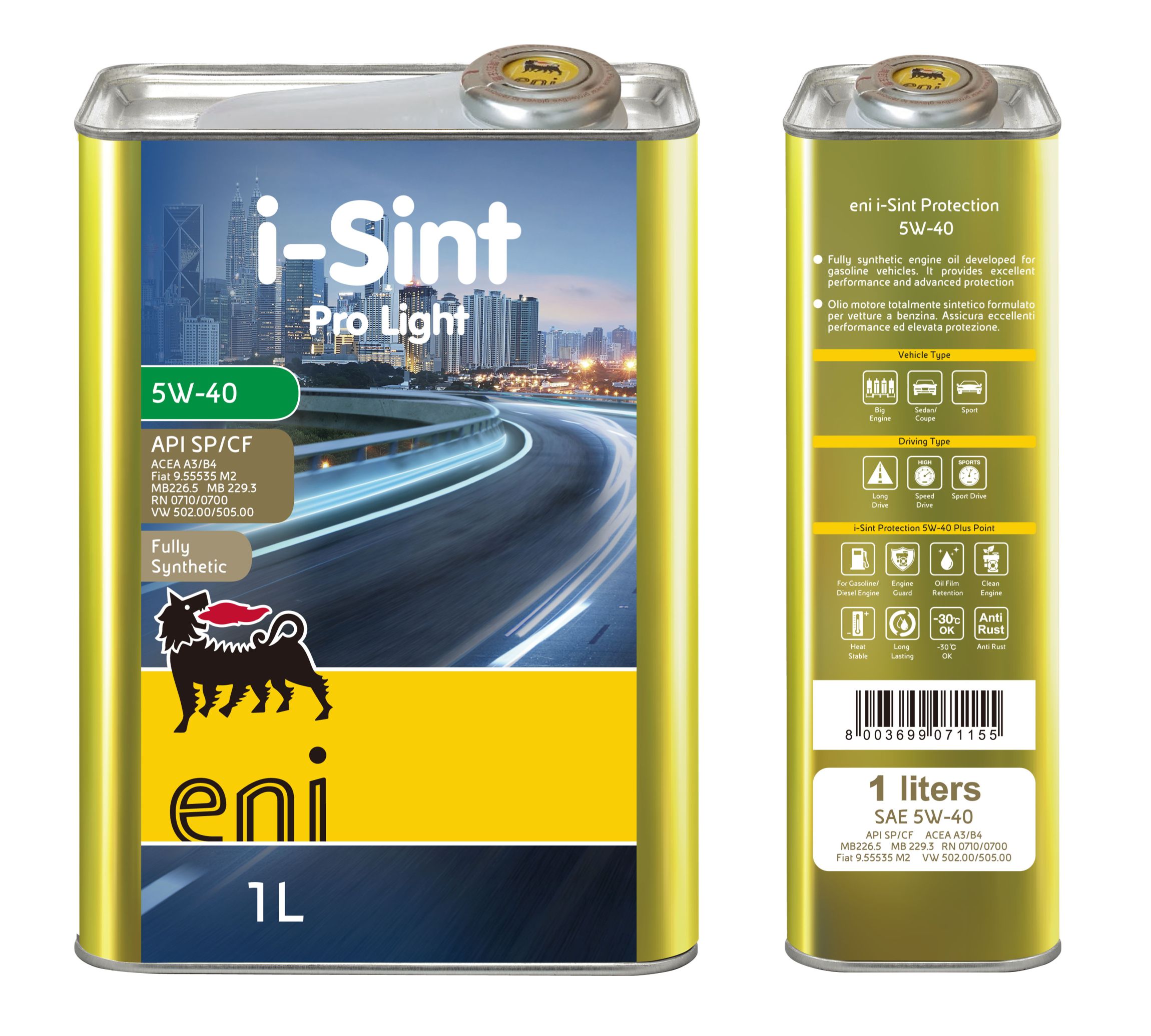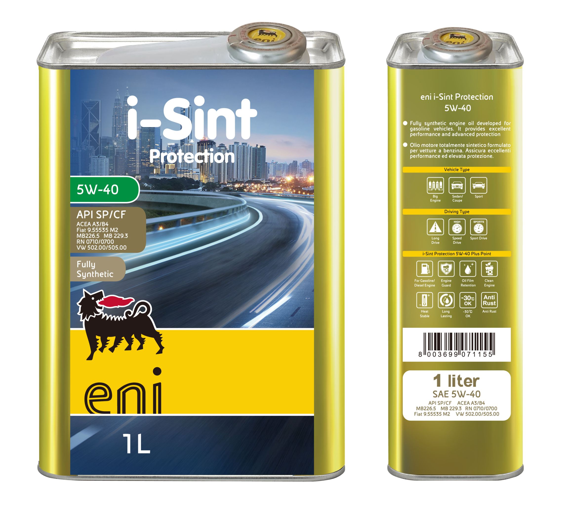 ENI 引擎機油(i-Sint 系列)採用先進合成技術,能在高溫與嚴苛環境下保持穩定油膜,有效減少引擎磨損與積碳沉積。其配方兼具低揮發與抗氧化特性,不僅能延長換油週期,還能幫助降低燃油消耗與排放,符合多種國際車廠標準,適合現代汽油與柴油引擎使用。